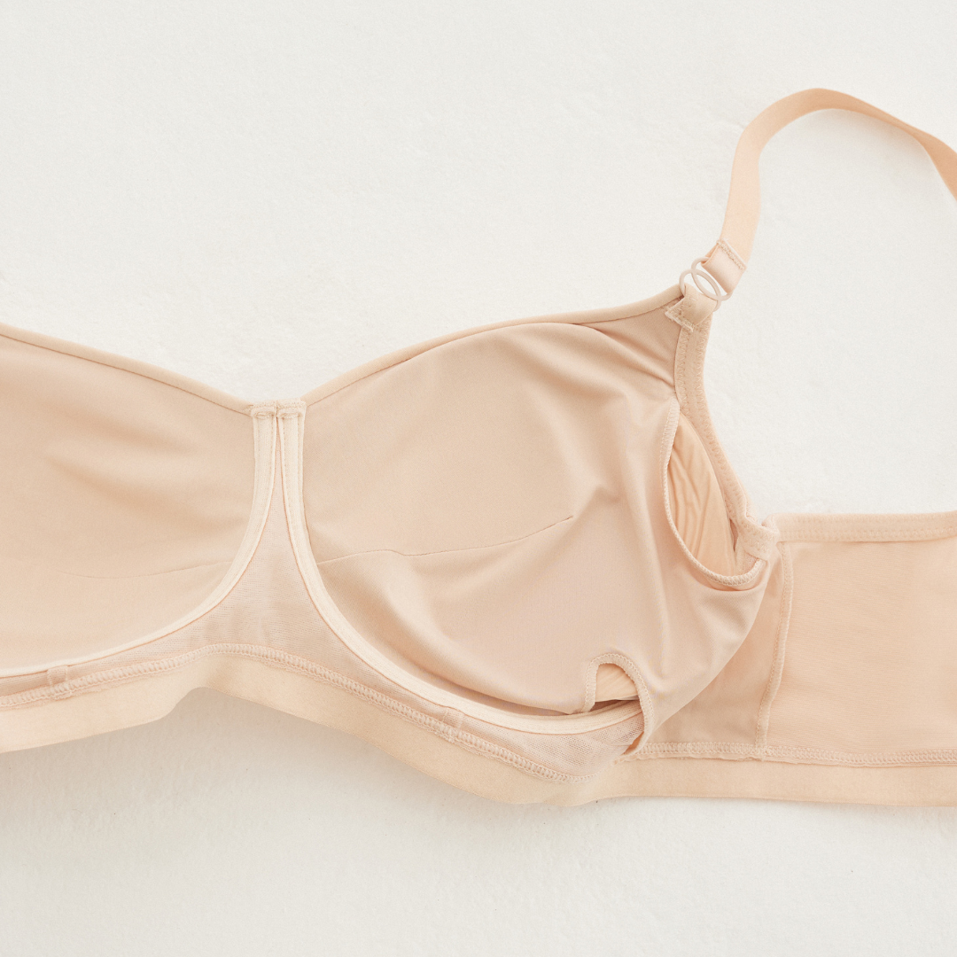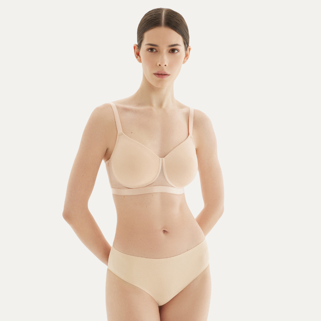 Bez žice i s diskretnim unutarnjim džepićima u koje možete umetnuti silikonsku protezu, ljuskicu za izjednačavanje ili lagani tekstilni umetak.