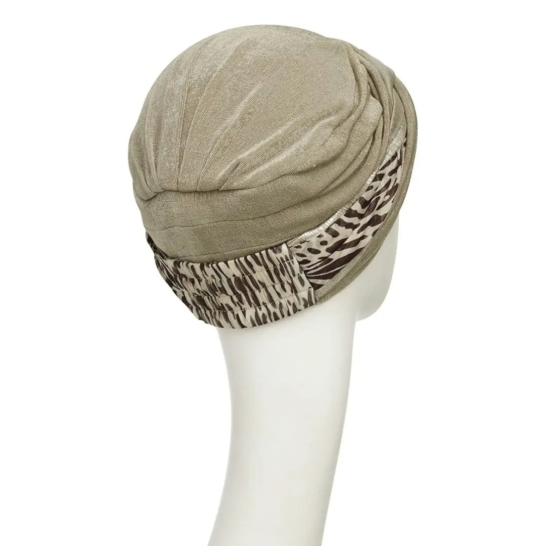 Sa stražnje strane model “Scarlett” ima dovoljno tkanine koja daje prekrasnu punoću zatiljku. Ako pak želite da vam turban bude više uz glavu, višak tkanine jednostavno možete umetnuti ispod trake.